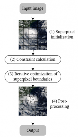 Figure 2. Process flow for automatic cloud boundary superpixel generation in satellite imagery