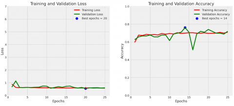 In this study, we meticulously chose the following hyperparameters based on preliminary experiments and literature review. The Adam optimizer was used with a default learning rate of 0.0001 due to its capacity to achieve a favorable equilibrium between training speed and stability. This enables the model to efficiently converge. A batch size of 16 was selected, determined to be optimal for our dataset and hardware capabilities, providing a balance between memory efficiency and the model's capacity to generalize from the training data. The model was trained for 25 epochs, a number chosen based on early stopping criteria observed during preliminary runs, where it was noted that the model's performance plateaued around this epoch count. The Adam optimizer was selected due to its capacity to dynamically adjust the learning rate during training, resulting in faster convergence and enhanced performance. Finally, a binary cross entropy loss function is used, as it is well suited for binary classification tasks like this case, which aim to differentiate between normal and abnormal coronary artery conditions.