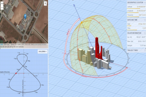 Generally, the campus is affected by the area’s temperature, however, in terms of microclimate the presidency building is surrounded by deserted lands gaining more exposure to direct sunlight in hot seasons, and less impact by the green areas within campus due to distance after relocation. Sun path diagram of the studied buildings is presented in Figure 3.