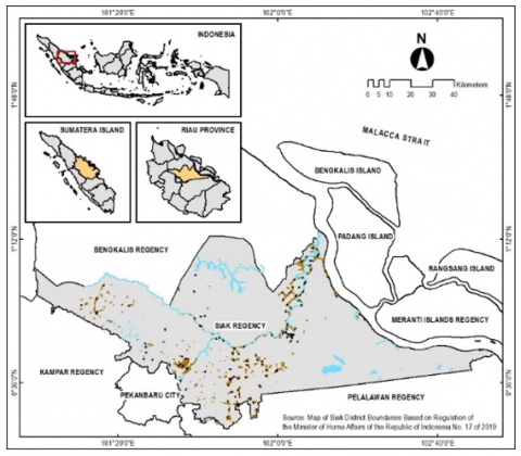 According to Government Regulation Number 50 of 2011, the Siak Regency is designated as a national tourism development area (KPPN) in Riau Province, with the development of natural tourism, especially mangrove ecotourism, as a flagship program. The mangrove area on the coast of the Sungai Apit District is one of the regional development areas in the context of utilizing space for regional tourism activities following the policies of the Siak District Government. This area is one of the potential areas to be developed as an ecotourism object because it has a relatively stable biodiversity and is still well maintained. The management of this area involves the participation of the local communities. Since 2017, this area has been designated an educational area protected by students and environmental activists. Thus, this area has great potential to study the ethnobotanical and ecological characteristics of mangrove forests.