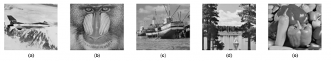 Figure 4. Dataset images [26] (a) Airplane, (b) Baboon, (c) Boat, (d) Lake, and (e) Pepper