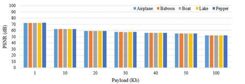Figure 5. Graph of proposed method PSNR vs. Payload size in different images