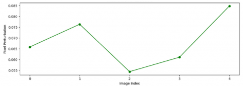 Distorted pixel drawing shows the amount of distortion applied to each pixel in distorted images compared to the original images. By analyzing distortion values, we can understand which pixels have been modified and to what extent. This information is necessary to understand the rigidity of the model and its susceptibility to hostile attacks. Figure 6 shows the amount of distortion applied to each pixel during an FGSM attack.
