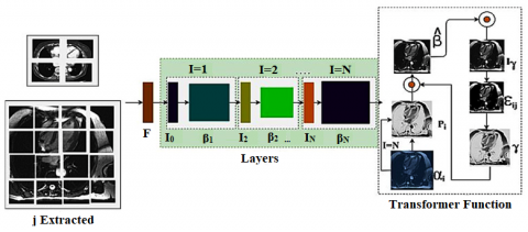 where, j represents the dimension representation of the data. Now the SwinTransform process takes place in this MRI analysis procedure. It is used in thwarting the pixel differentiation issued in the MRI cardiac analysis. This process is important in the MRI cardiac analysis particularly designed to address the issues that are related to pixel differentiation. It helps enhance the precision and efficaciousness of disease detection within the cardiac MRI data. In this swim transformer process, the segmentation and boundary detection procedures are performed for further procedures. The SwinTransform process is explained in the equation below: