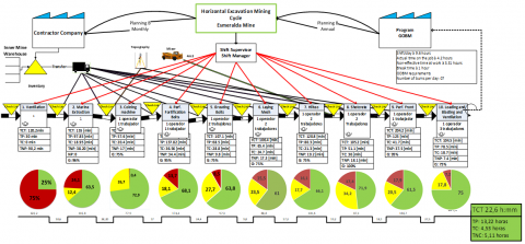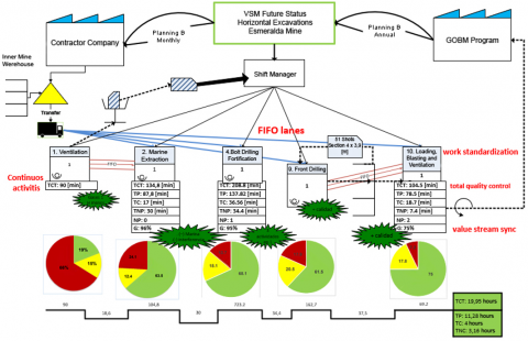 Below is the map of the future state of the mining cycle of horizontal developments, which is the ideal state of production. These correspond to the activities of the mining cycle with the lowest performance (Ventilation, coining, marine loading and face drilling).