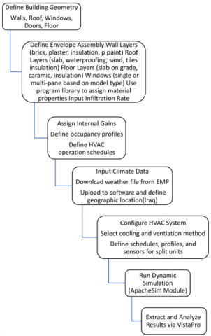 The factors that will be considering in Simulations already mention in item (2.1 to 2.5) which included building location, geometry and design, Climate, the envelopes, internal and external heat gain, thermal comfort condition, infiltration and ventilation, and finally HVAC system.