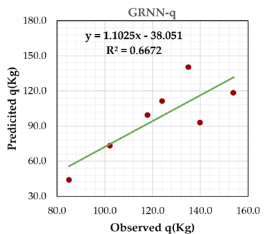 The number of hidden layers has been chosen to be 1 layer for the GRNN and RBF and 2 layers for the MLP model, with 6 number of neurons in each layer for all models. Cross-validation is a highly recommended criterion for stopping the training of a network. For the current study, the stopping training process after 100 epochs and the lowest value of MSE will be considered. The activation function of all models used to be sigmoid. This study developed the suggested model using NeuroSolutions software version 7.1.1 on a Windows PC (core i7 12 gen CPU and 16 Gb RAM).