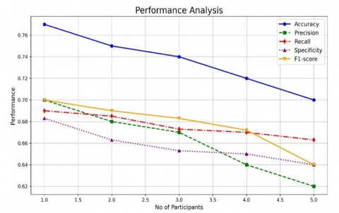 Figure 17. Performance of Fed-Hybrid-LSTM approach in recognizing the varied threats for the increased number of participants