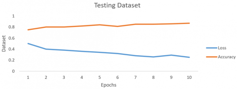 Figure 18. Accuracy and loss of testing for contextual ontology-based fuzzy logic and LSTM over 10 epochs