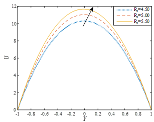In order to get the clear concept of physical phenomena of the developed model, the effects of parameters such as Re and Z, with the appearance of (τD=0.001), (Pr=1.50), (RD=0.001) and (Ec =0.50) are represented graphically through Figures 5-8. For brevity, the impacts of other parameters are presented in Table 1.