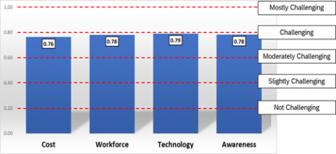• Awareness: Al-Ashmori et al. [32] stated that BIM implementation in the Malaysian construction industry is low due to lack of awareness of its benefits. Since 2007, the government has implemented BIM, but industry stakeholders are unaware of its benefits. In Malaysia, there is still a shortage of knowledge about the advantages of using BIM. There is a shortage of workshops, lectures, and conferences aimed at increasing public awareness of BIM. When a firm applies BIM to its daily processes, the level of BIM knowledge and staff awareness tends to enhance; however, teaching or facilitating seminars becomes passive if BIM is not applied [33]. From a technological awareness perspective, there is also a lack of understanding regarding BIM techniques, innovative technologies, and their applications [34]. Waqar [31] found that there is limited awareness of the benefits of BIM adoption in Malaysia, particularly among project staff, which exacerbates challenges in BIM execution. Most of these challenges involve the knowledge, technology, and processes of BIM adoption [35]. Some BIM adoption barriers are easier to overcome than others. Several obstacles have slowed BIM adoption in construction as follows: