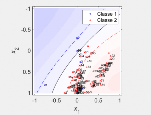 Let F be the training dataset and H (x) the separating function is reduced to a linear combination of the kernel function on the training data. The Lagrange multipliers are obtained by minimizing the convex quadratic objective function under the constraints (Eq. (4)):