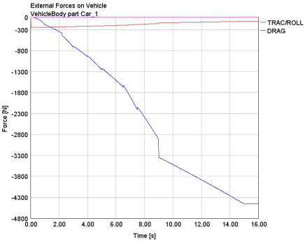 Figure 10. External forces on car (drag and roll) vs. time during start